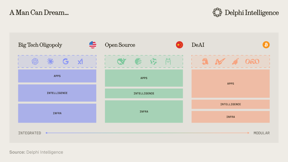 My first attempt at answering this question came in the form of a four part, 36,000 word, 158 graphic magnum opus on decentralized AI. The core thesis was that, eventually, (in a very Christensen-esque way) modular approaches to intelligence would prove either more performant or cost-effective through aggregating the long tails of talent, data, and compute.
