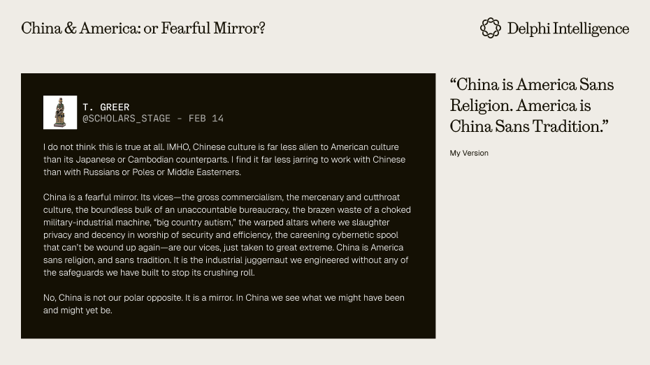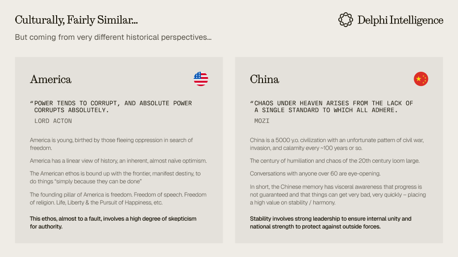 Directionally, I’m closer to @scholars_stage: believing the US and China to be culturally quite similar, yet coming from very different historical perspectives:
